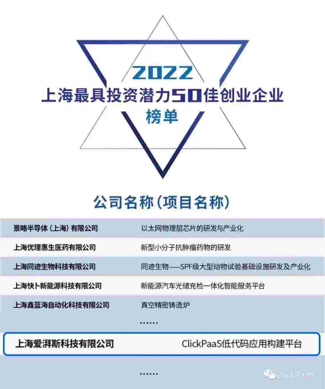 抖音钱包 作为国内低代码PaaS平台的领军企业,,,,,,,,,与120家创企入围角逐。。。。。。。期间接受了来自德同资本、、、、、、、、、、领中资本等知名投资机构的10位投资人组成专家评委团的背靠背盲选。。。。。。并最终入围“2022上海最具投资潜力50佳创业企业”榜单,,,,,,,,,,,,被列入“上海市重点培育创业企业库”。。。。。。