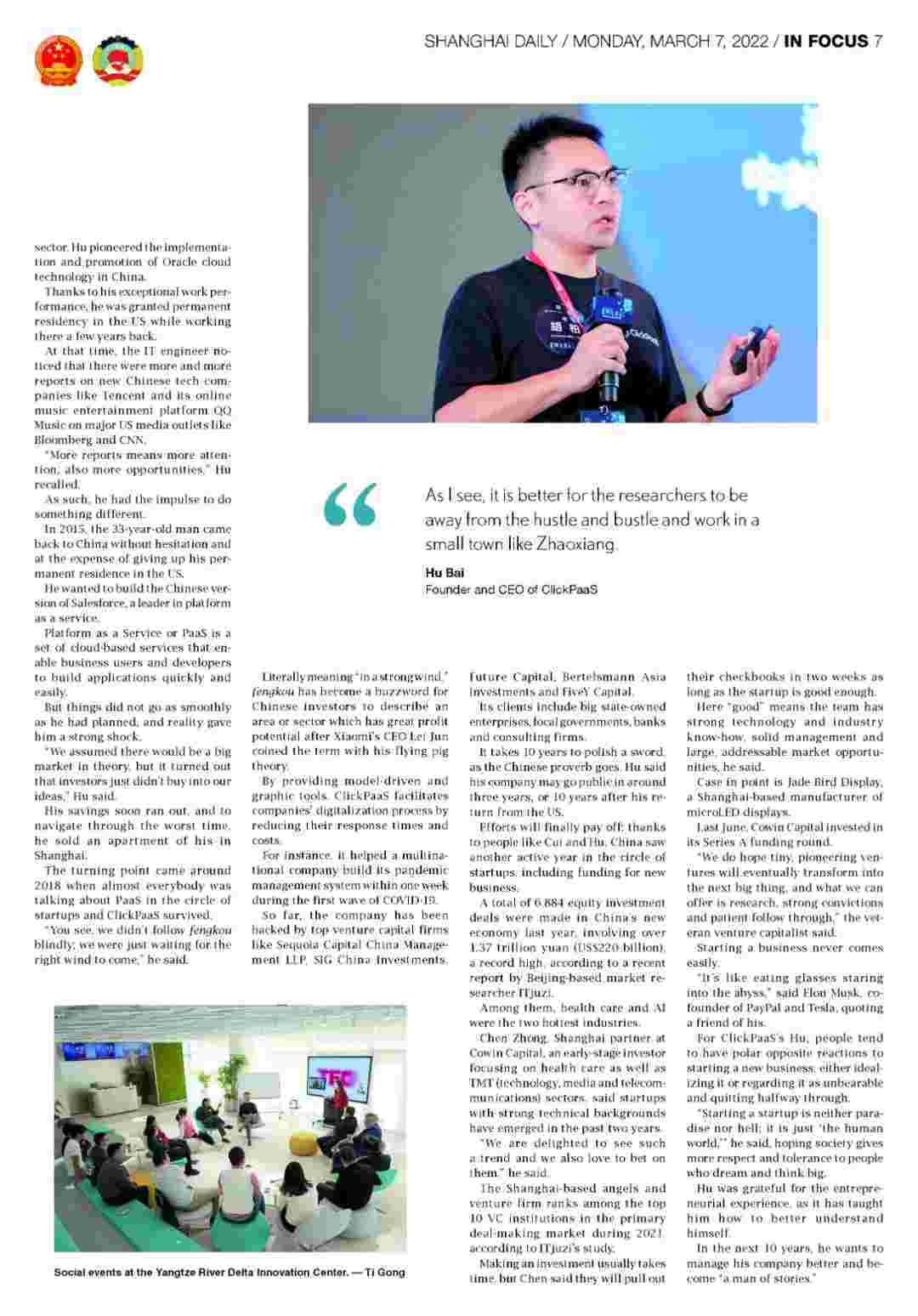《上海日报》专访抖音钱包创始人、、、、、CEO胡柏,,,,,,,,,,探究其创业背后的故事!!!!!!